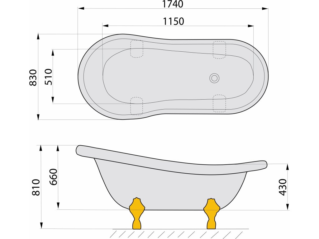 Polysan BRIXTON volně stojící vana 174x83x81cm, nohy chrom mat, bílá 94817