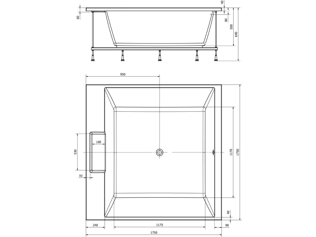 Polysan CAME čtvercová vana s konstrukcí 175x175x50cm, bílá 23611