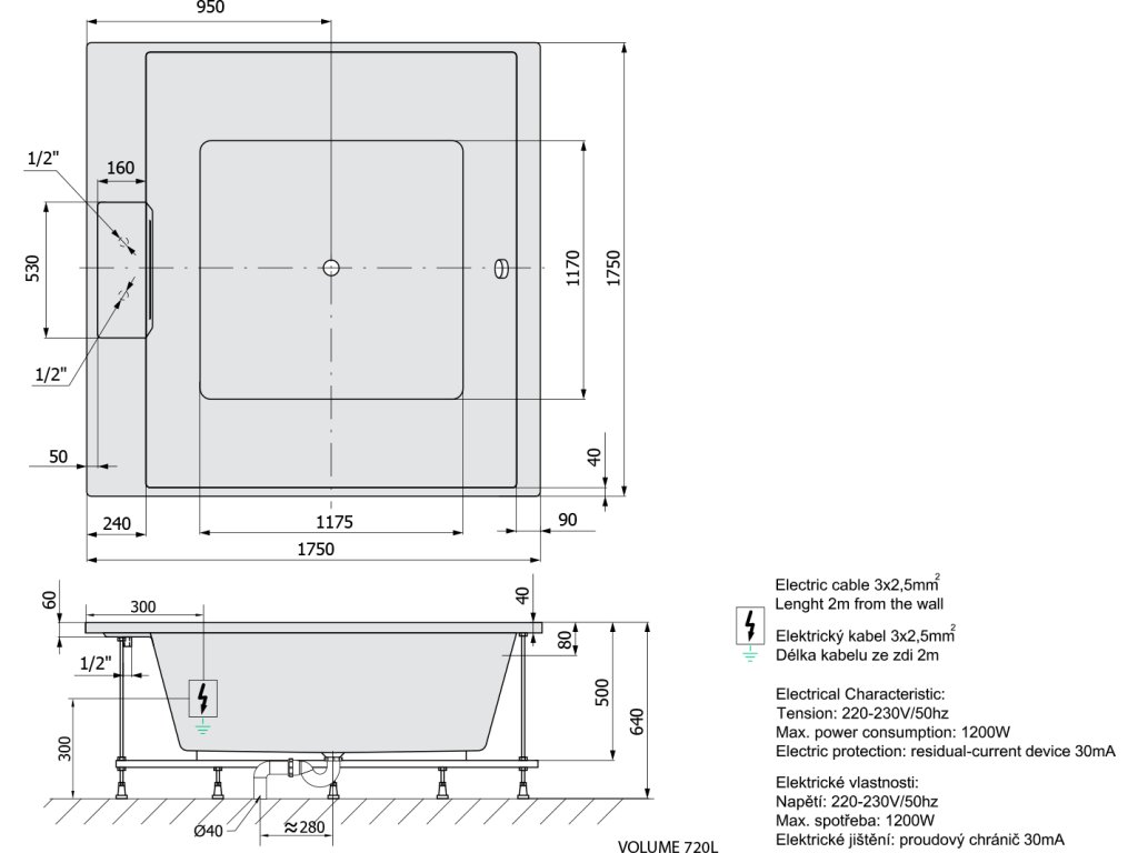 - Na přání lze instalovat COLORTERAPII a napouštění přepadem