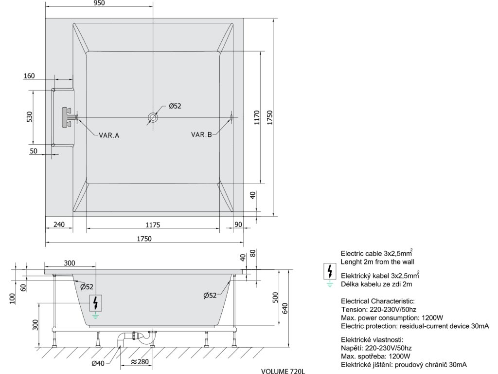 - Snadná instalace (jako klasické vany + el. přívod)