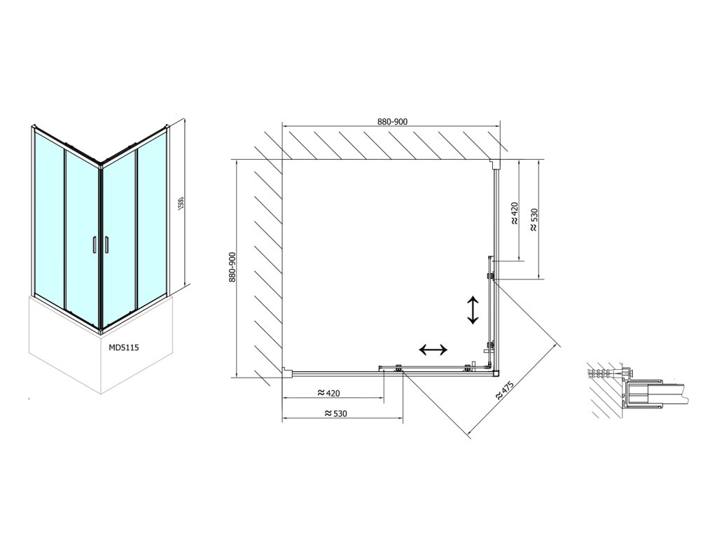 Soubory ke stažení:- Čtvercová zástěna s dvoudílnými posuvnými dveřmi