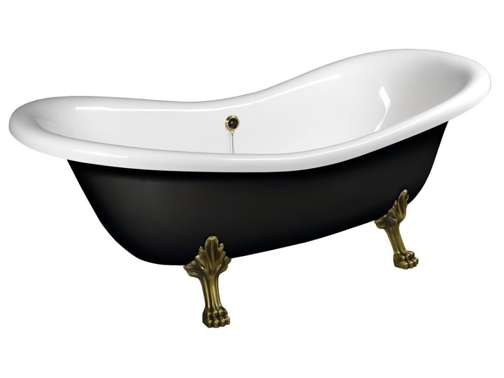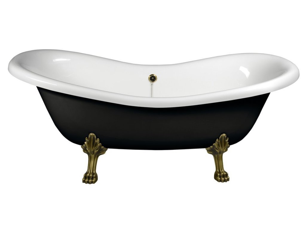 Polysan CHARLESTON volně stojící vana 188x83x69cm, nohy bronz, černá/bílá 72960