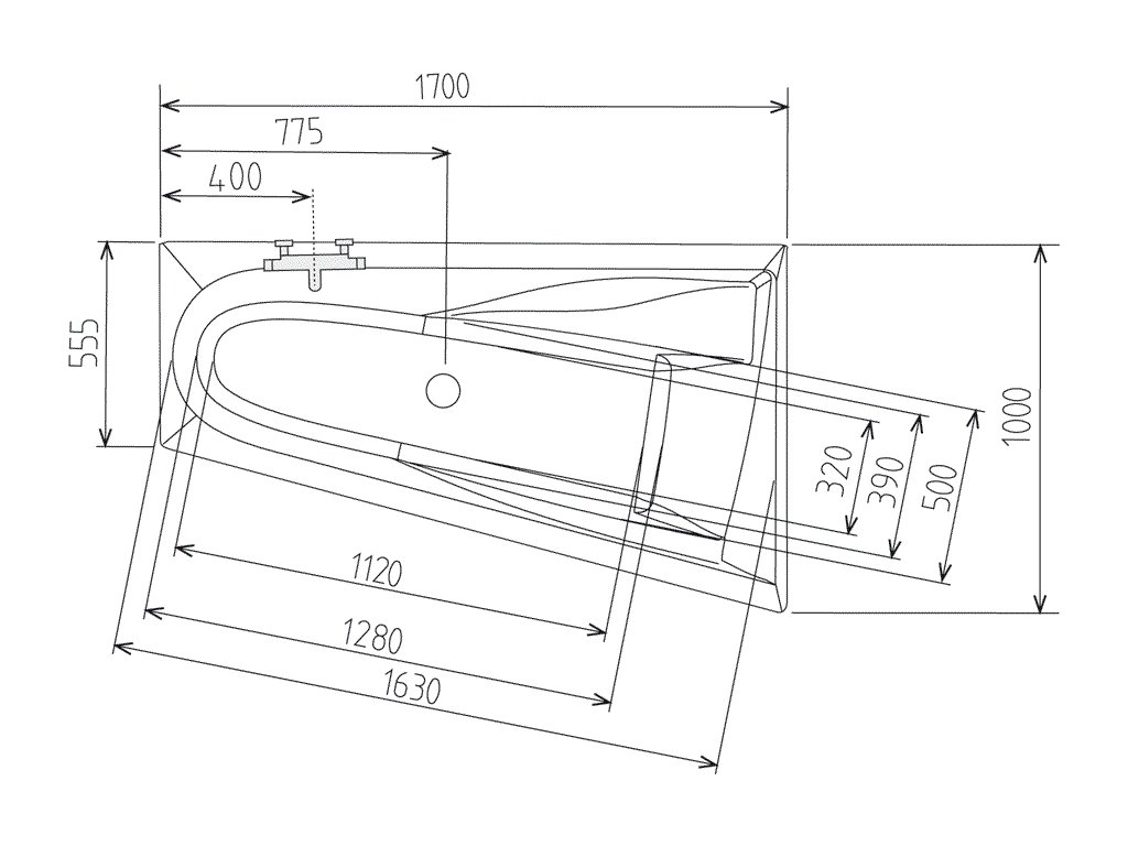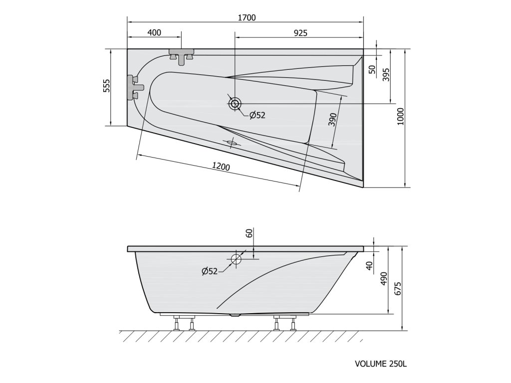 Polysan CHIQUITA R asymetrická vana 170x100x45cm, bílá 92619