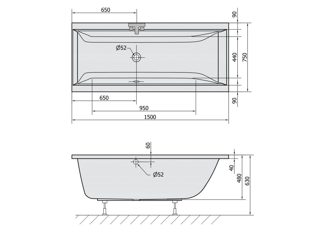 Polysan CLEO obdélníková vana 150x75x48cm, bílá 27611