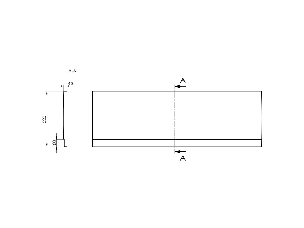- Čelní panel je dodáván bez bočního panelu. Boční panel je nutno objednat samostatně dle rozměru vany.