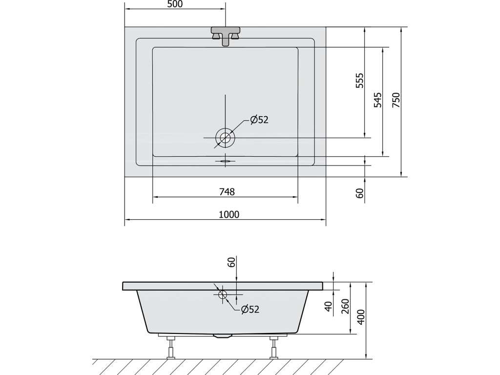 - V případě podezdění doporučujeme k vaničce zakoupit nohy (podstavec).