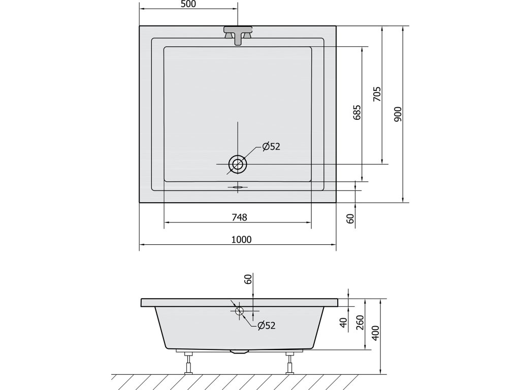 - V případě podezdění doporučujeme k vaničce zakoupit nohy (podstavec).