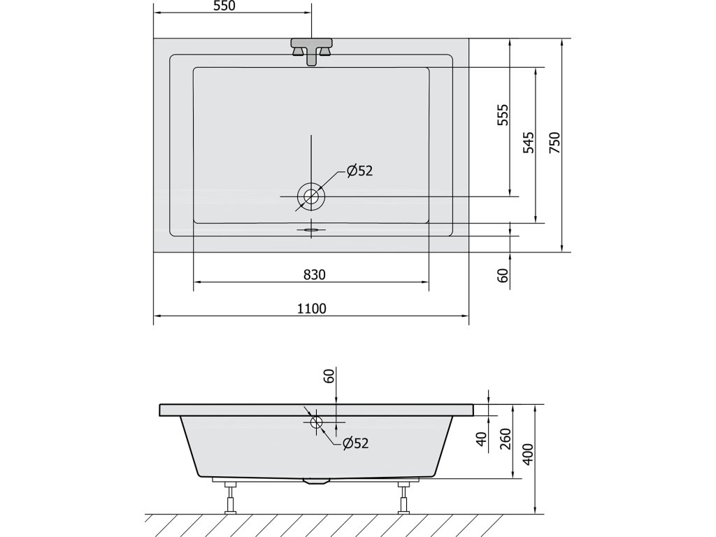 - V případě podezdění doporučujeme k vaničce zakoupit nohy (podstavec).