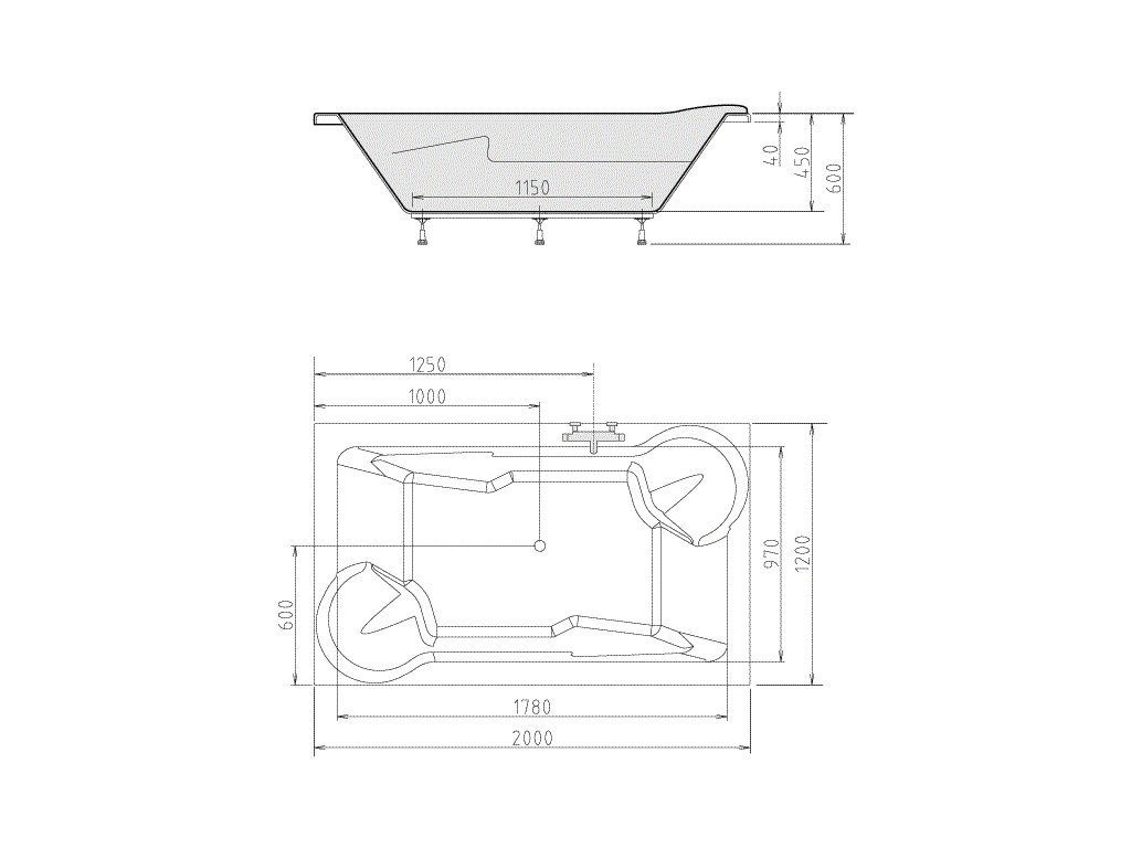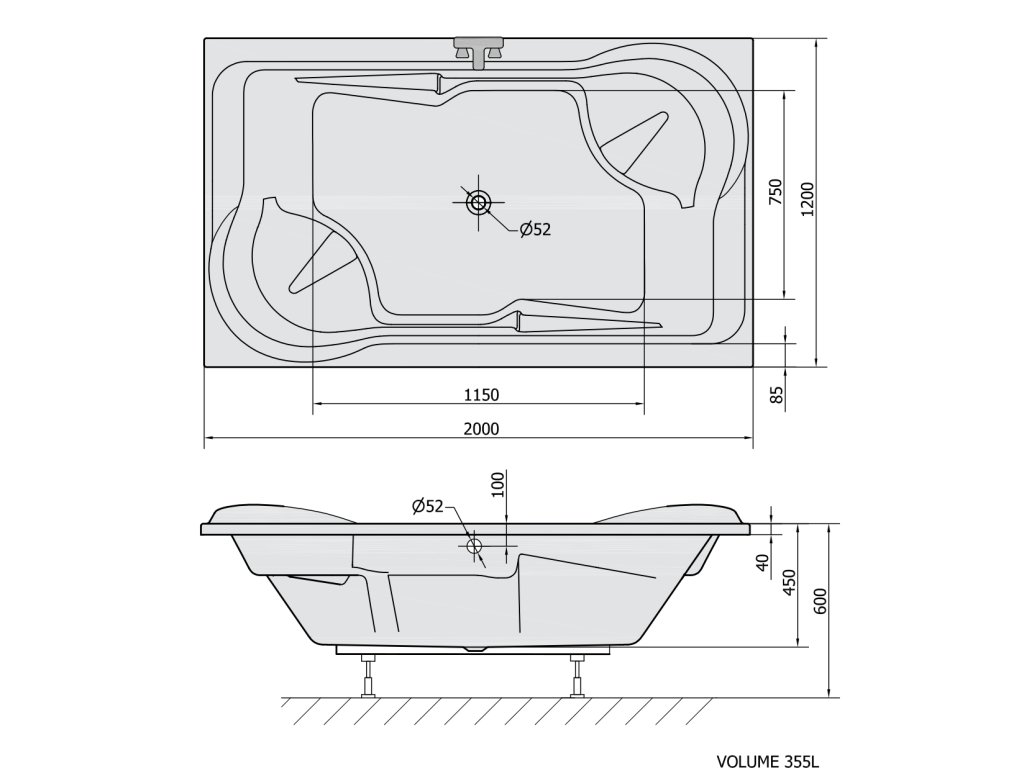 Polysan DUO obdélníková vana 200x120x45cm, bílá 16111