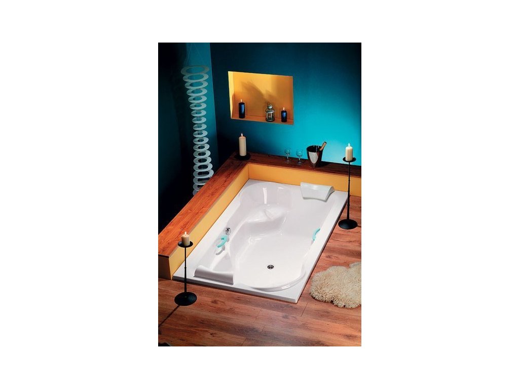 Vana s pohodlně tvarovanými stěnami pro opření zad na obou stranách a odtokem umístěným uprostřed.