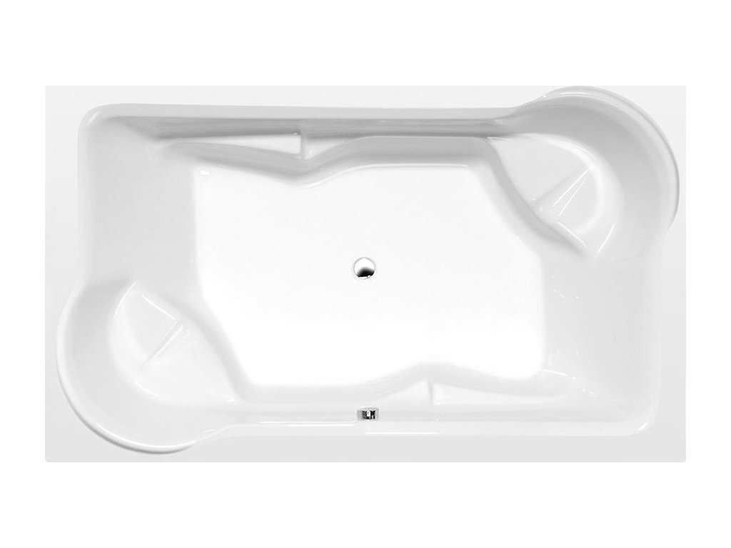 Vana s pohodlně tvarovanými stěnami pro opření zad na obou stranách a odtokem umístěným uprostřed.