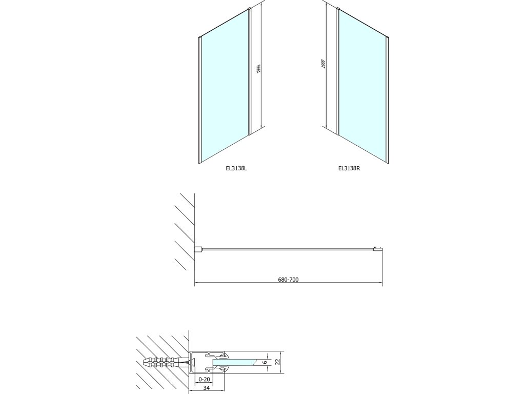 Tvar: | Pevná stěna ke sprchovým dveřím |