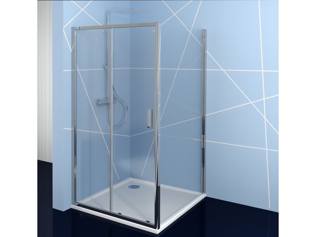 - Čtvercové zástěny s dvoudílnými posuvnými dveřmi, rohový vstup