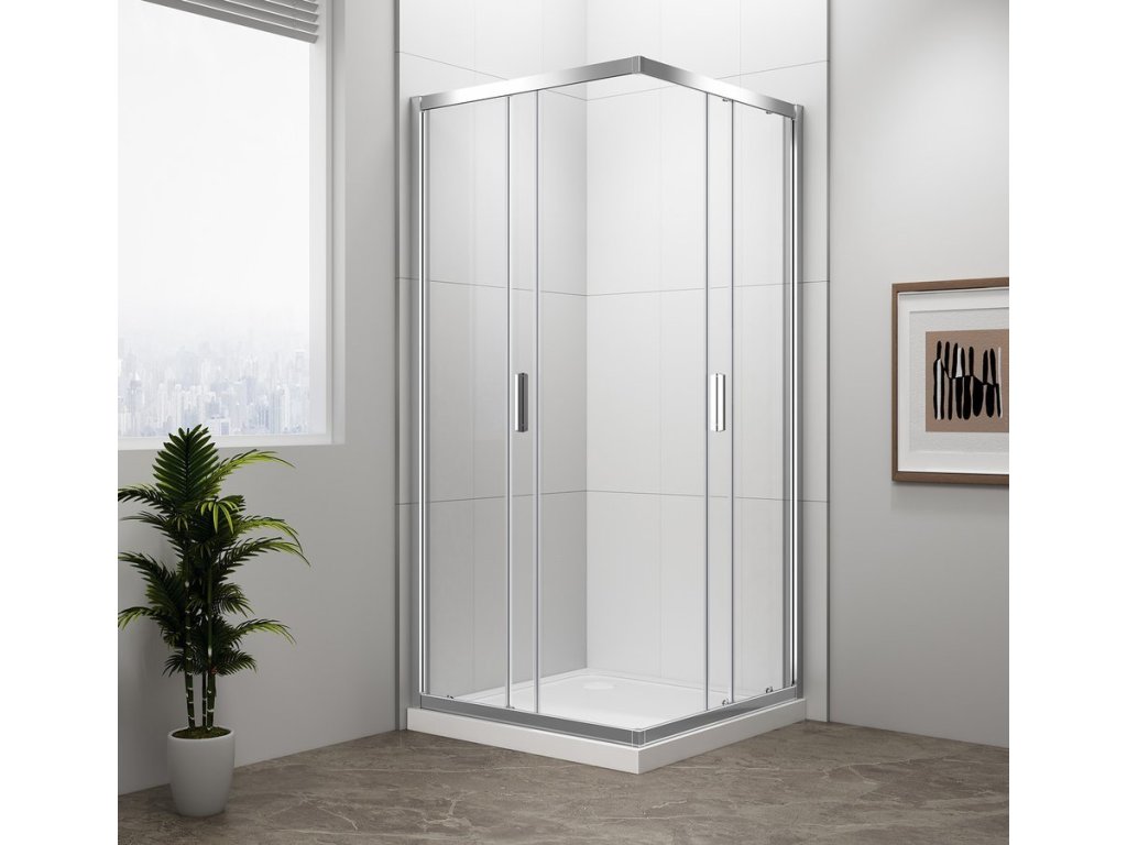 - Čtvercové zástěny s dvoudílnými posuvnými dveřmi, rohový vstup