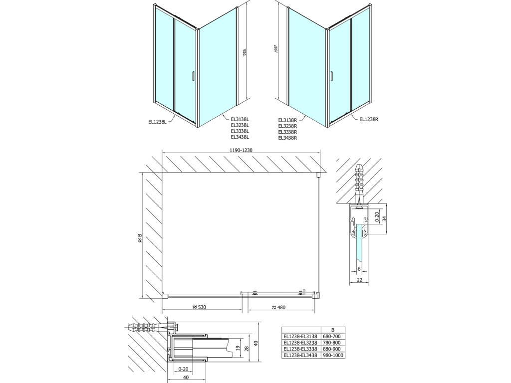 - Boční stěnu lze ke všem typům dveří instalovat z levé i pravé strany, bez ohledu na stranu otevírání dveří