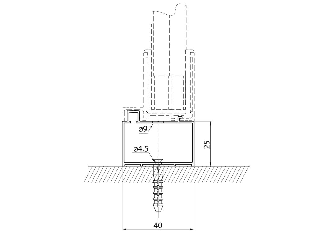 Profil se instaluje na stěnu pod původní stěnový profil. Díky své konstrukci dokonale pasuje na stěnový profil a rám zástěny zachovává svou kompaktnost a dokonalou těsnost. Profil je dodáván včetně vrchní krytky.