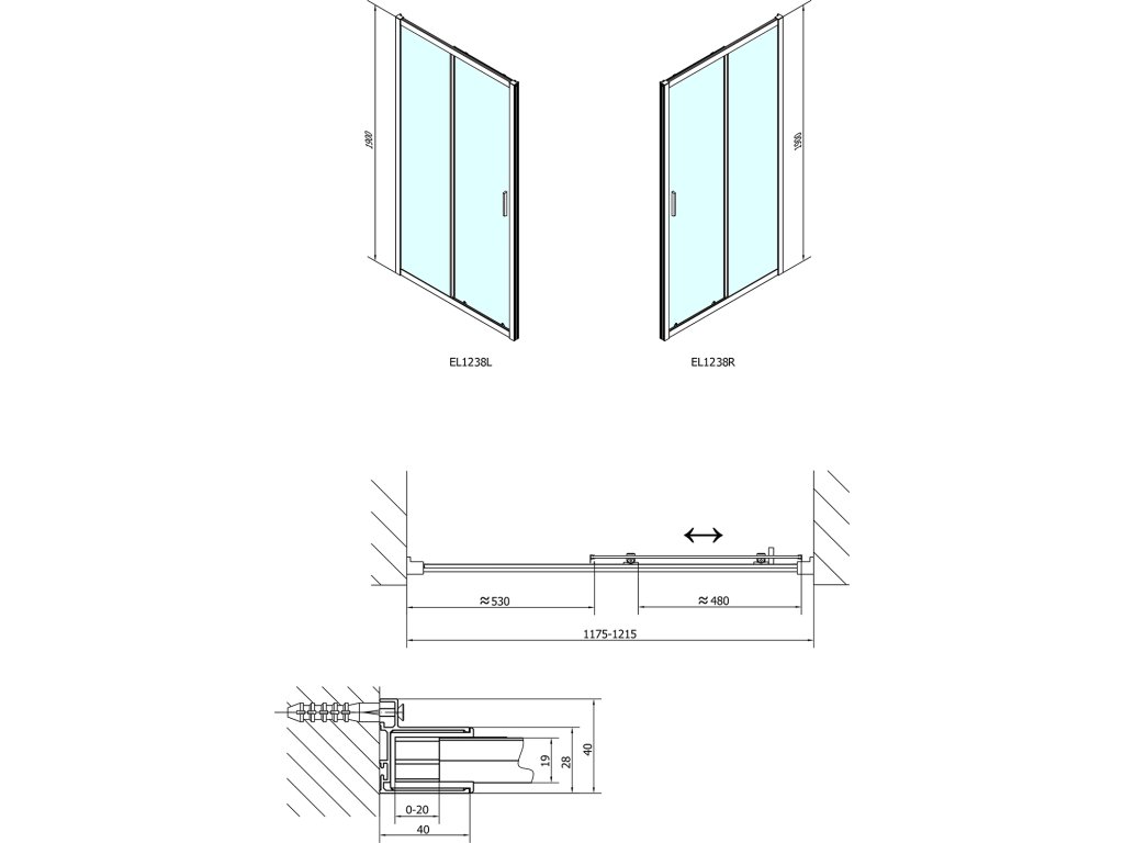 - Instalační rozměr dveří do niky lze díky rozšiřovacímu profilu EL825 zvětšit o 25 mm na každou stranu, celkem o 50 mm