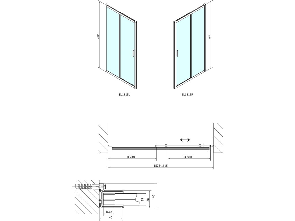 - Instalační rozměr dveří do niky lze díky rozšiřovacímu profilu EL825 zvětšit o 25 mm na každou stranu, celkem o 50 mm