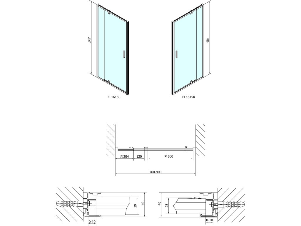 - Instalační rozměr dveří do niky lze díky rozšiřovacímu profilu EL825 zvětšit o 25 mm na každou stranu, celkem o 50 mm
