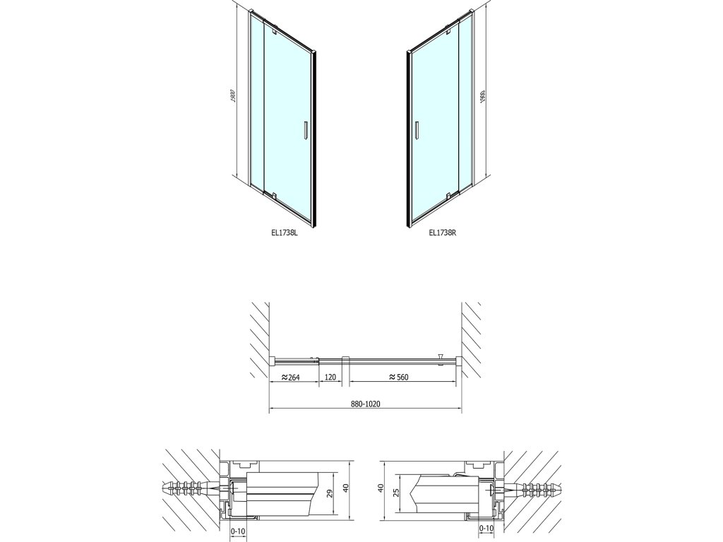 - Instalační rozměr dveří do niky lze díky rozšiřovacímu profilu EL825 zvětšit o 25 mm na každou stranu, celkem o 50 mm
