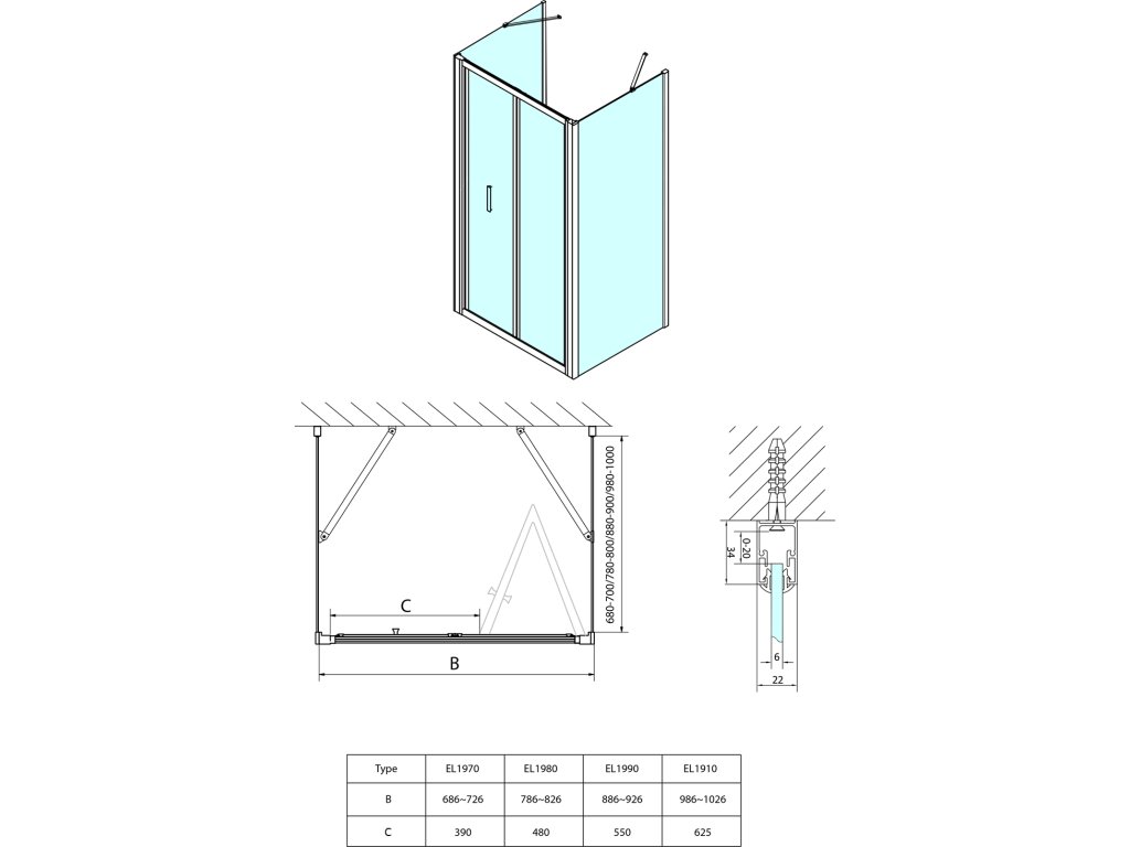- Instalační rozměr dveří do niky lze díky rozšiřovacímu profilu EL825 zvětšit o 25 mm na každou stranu, celkem o 50 mm