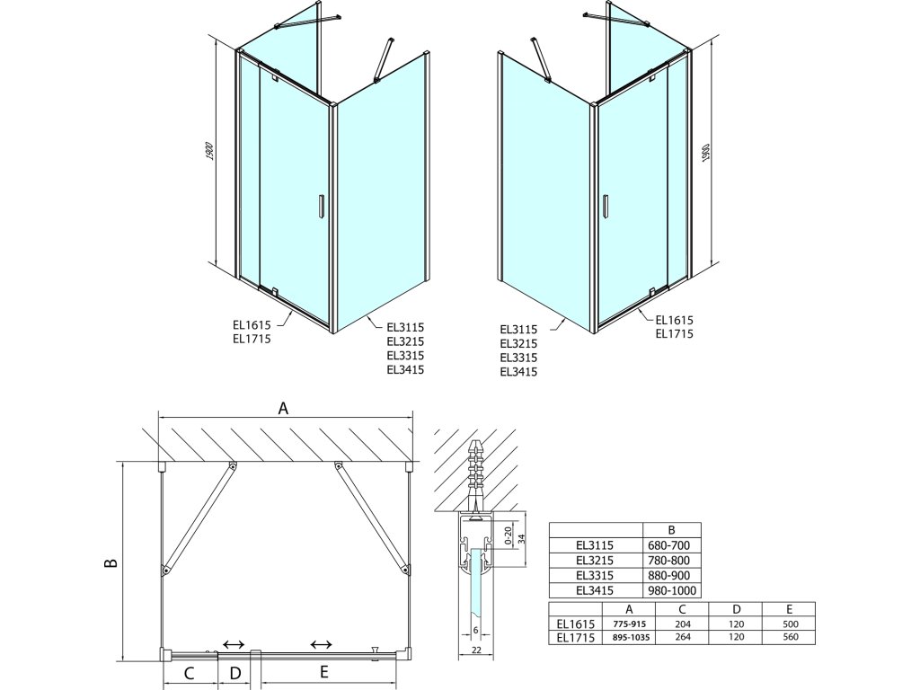 - Instalační rozměr dveří do niky lze díky rozšiřovacímu profilu EL825 zvětšit o 25 mm na každou stranu, celkem o 50 mm