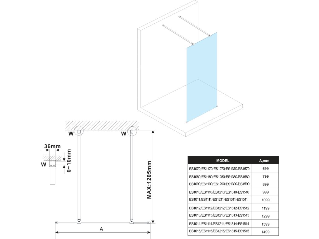 - Stěnové profily s tolerancí 15 mm usnadňují stabilní montáž zástěn, instalace je možná na dlažbu nebo sprchovou vaničku