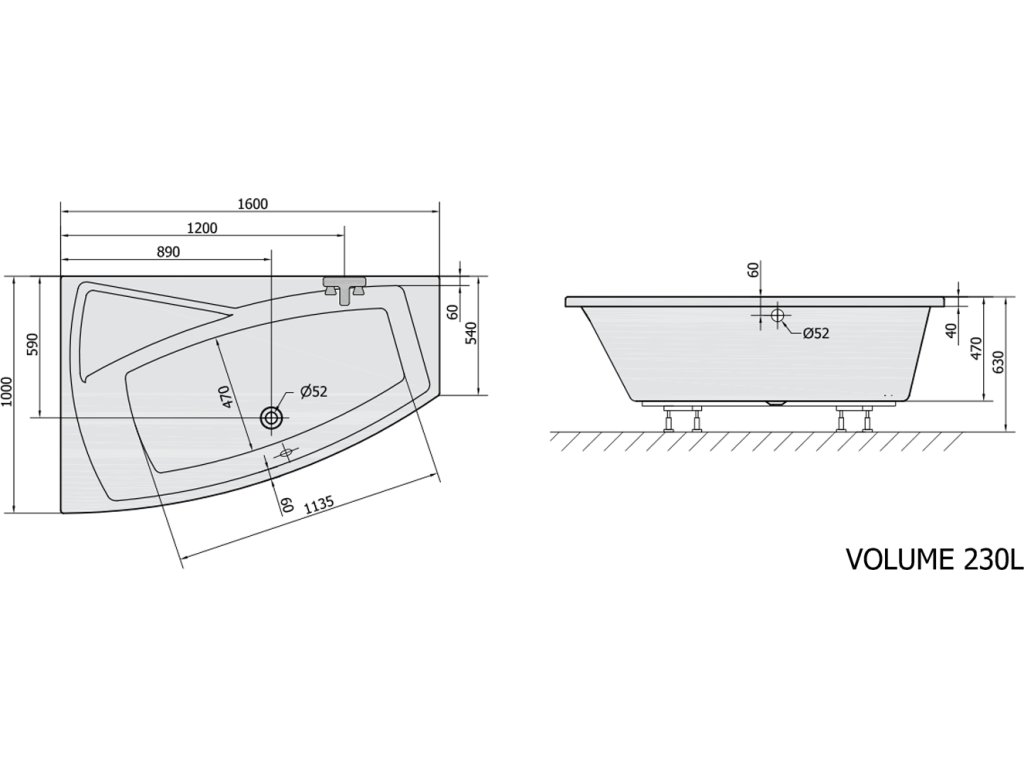 Polysan EVIA L asymetrická vana 160x100x47cm, bílá 11611