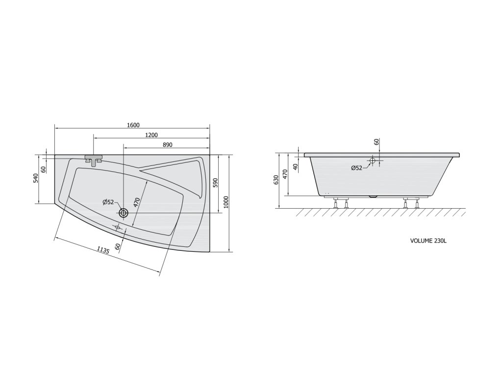 Polysan EVIA R asymetrická vana 160x100x47cm, bílá 12611