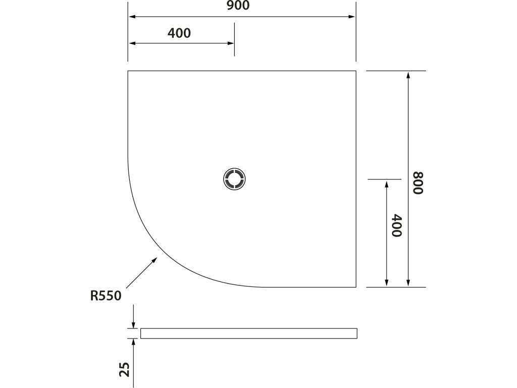 Polysan FLEXIA vanička z litého mramoru čtvrtkruh, s možností úpravy rozměru, 90x80cm, R550, pravá 91231