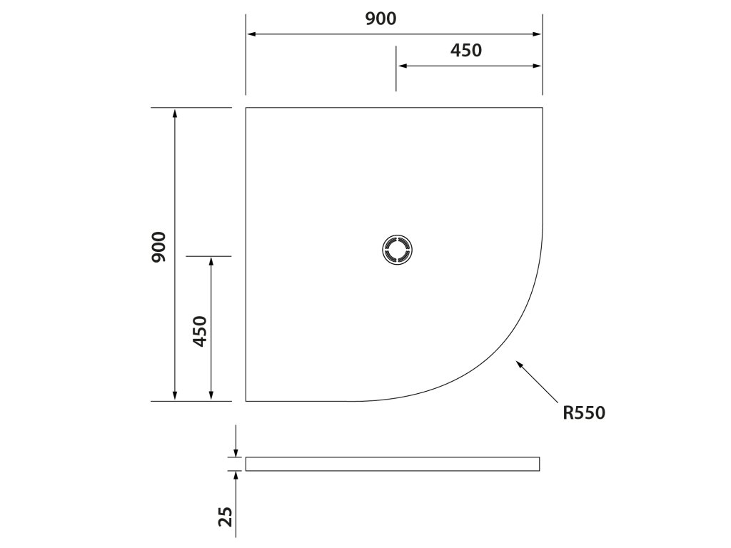 Polysan FLEXIA vanička z litého mramoru čtvrtkruh, s možností úpravy rozměru, 90x90cm, R550 91181
