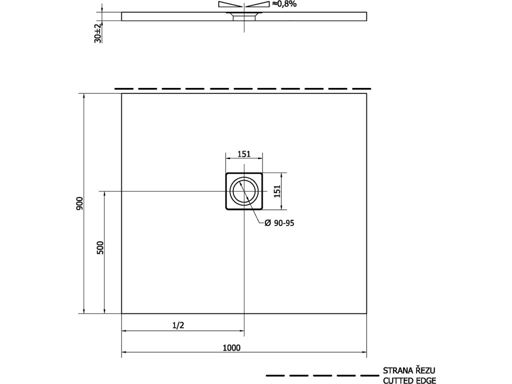 Při zadávání rozměrů je důležité počítat s tolerancí na přesnost řezu. Sprchové podlahy FLEXIA jsou řezány na požadovaný rozměr na strojní formátovací pile s tolerancí ± 2 mm na metr řezu. Následný řez není pohledový.