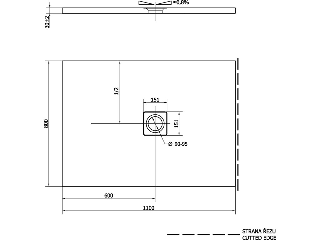 Při zadávání rozměrů je důležité počítat s tolerancí na přesnost řezu. Sprchové podlahy FLEXIA jsou řezány na požadovaný rozměr na strojní formátovací pile s tolerancí ± 2 mm na metr řezu. Následný řez není pohledový.
