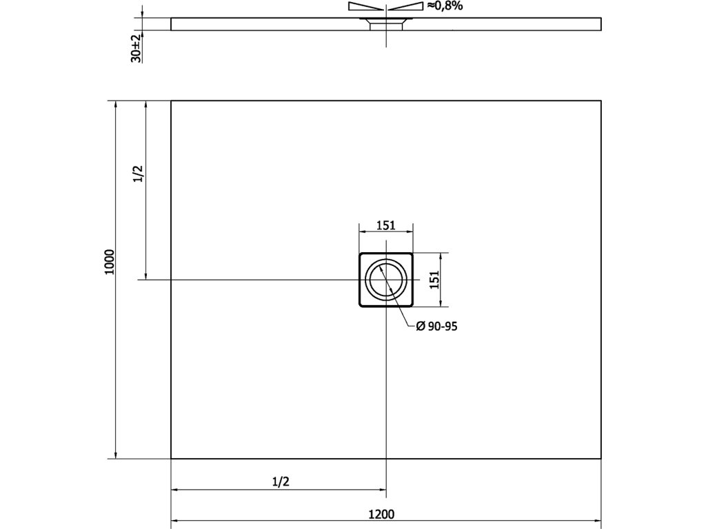 Umístění otvoru na sifon je pevně daný a nelze ho změnit. Okolo sifonu je, vzhledem k pevnosti podlahy, doporučeno případný řez vést minimálně 15 cm od středu sifonu.