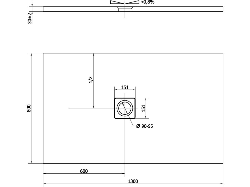 Při zadávání rozměrů je důležité počítat s tolerancí na přesnost řezu. Sprchové podlahy FLEXIA jsou řezány na požadovaný rozměr na strojní formátovací pile s tolerancí ± 2 mm na metr řezu. Následný řez není pohledový.