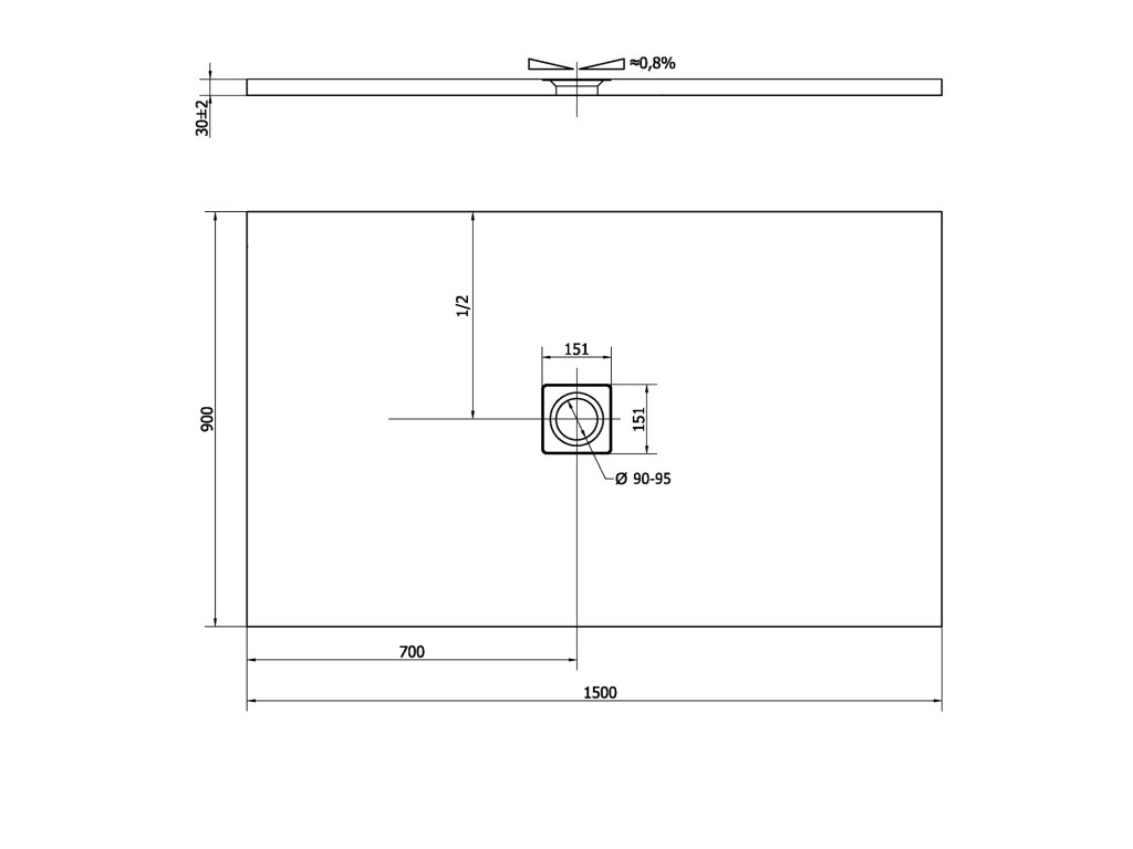 Při zadávání rozměrů je důležité počítat s tolerancí na přesnost řezu. Sprchové podlahy FLEXIA jsou řezány na požadovaný rozměr na strojní formátovací pile s tolerancí ± 2 mm na metr řezu. Následný řez není pohledový.