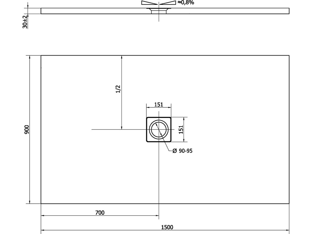 Při zadávání rozměrů je důležité počítat s tolerancí na přesnost řezu. Sprchové podlahy FLEXIA jsou řezány na požadovaný rozměr na strojní formátovací pile s tolerancí ± 2 mm na metr řezu. Následný řez není pohledový.