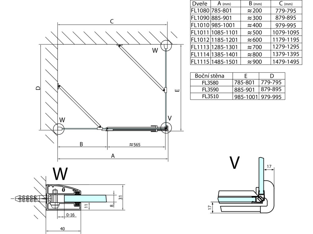 Tvar: | Pevná stěna ke sprchovým dveřím |