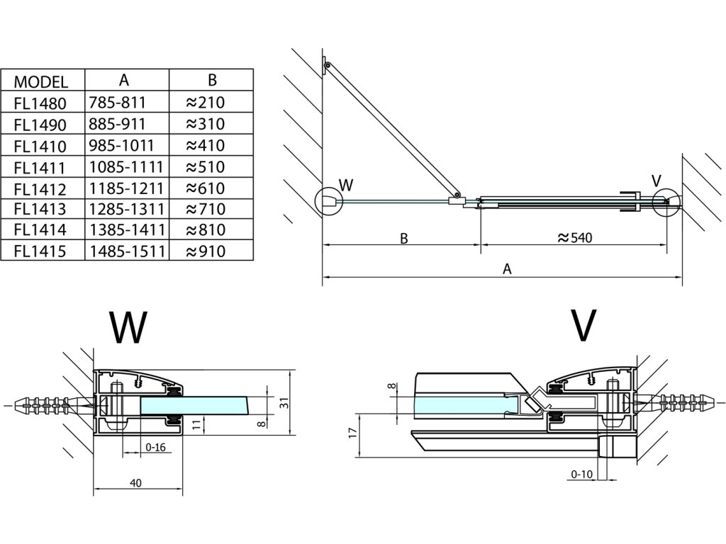 - Snadná montáž pomocí nastavitelného stěnového profilu 0-16 mm