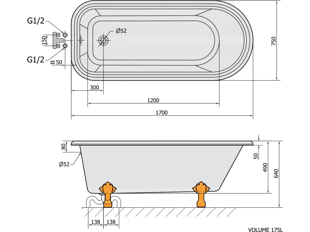Upozornění: K vaně je nutno použít speciální přepadovou soupravu.