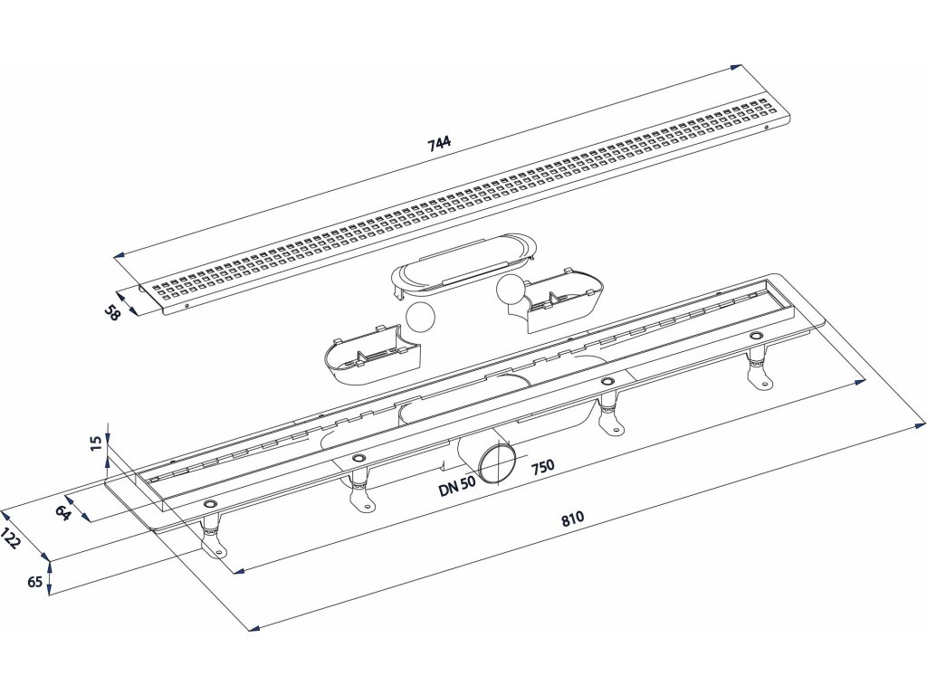 Polysan INDY podlahový žlab s nerezovým roštem, L-810, DN50 73651