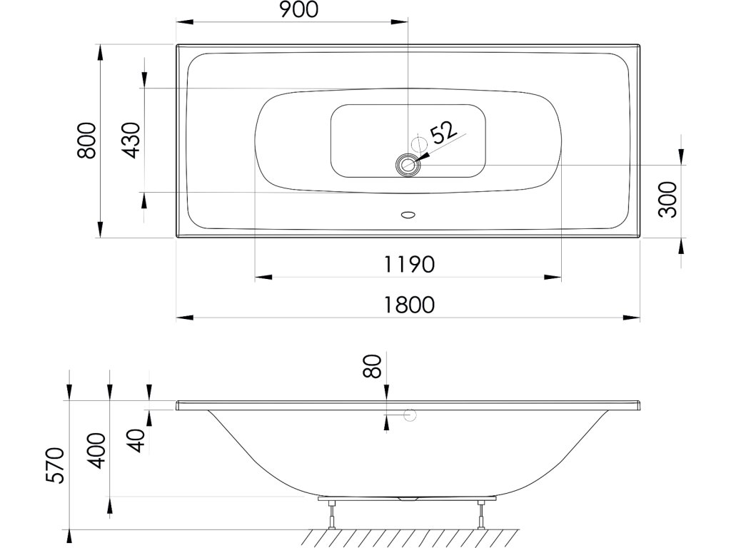 Polysan KALDERA obdélníková vana 180x80x40cm, bílá 60611