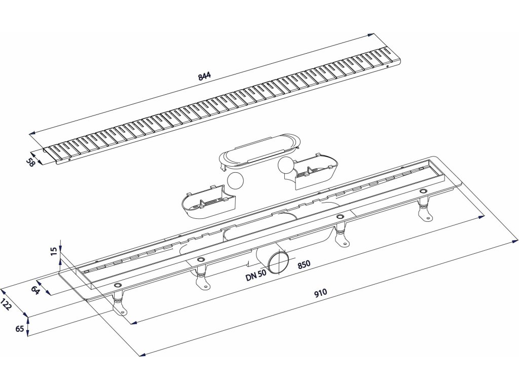 Polysan KLAVER podlahový žlab s nerezovým roštem, L-910, DN50, černá mat 73741B