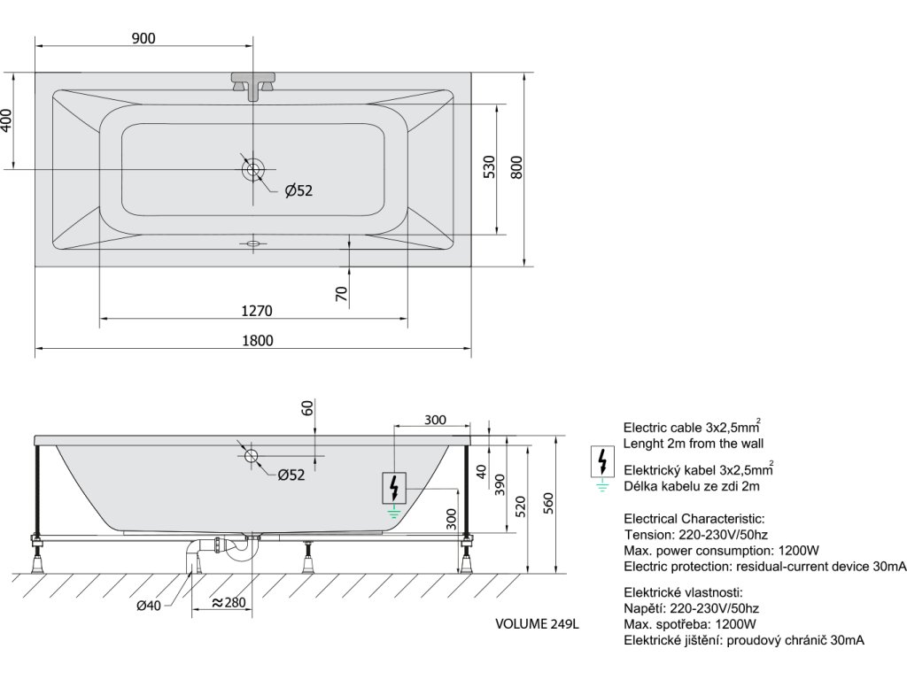 | Objem: | 249 l |