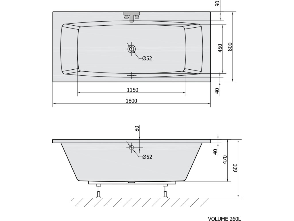 Polysan KVADRA obdélníková vana 180x80x47cm, bílá 17611