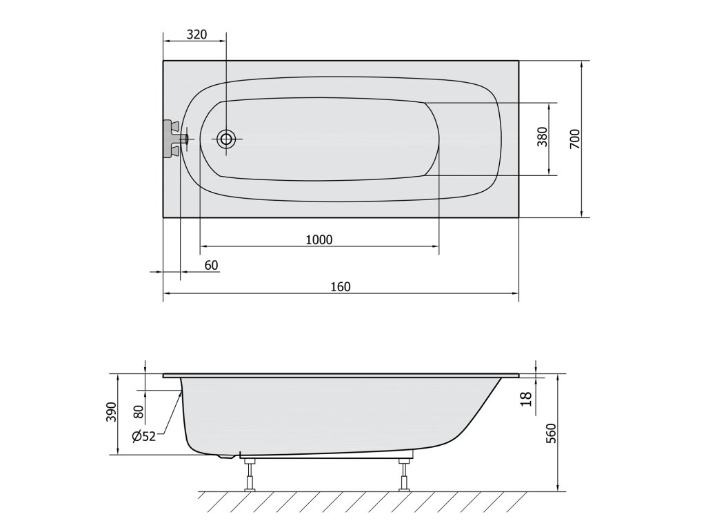 Polysan LAURA SLIM obdélníková vana 160x70x39cm, bílá 24611S
