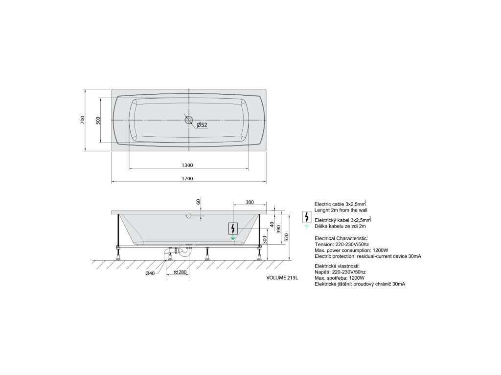 - Snadná instalace (jako klasické vany + el. přívod)