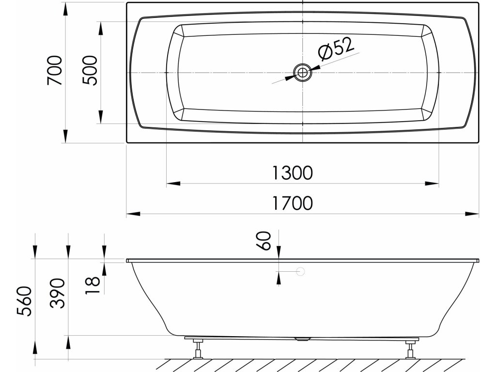 Polysan LILY SLIM obdélníková vana 170x70x39cm, bílá 72230S