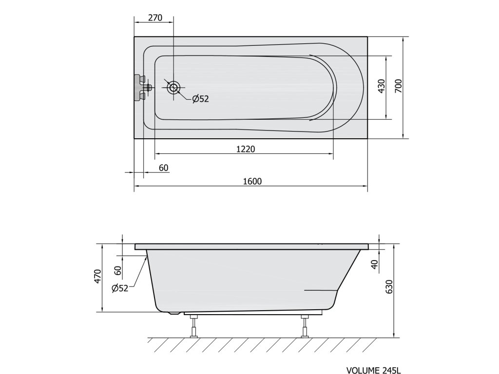 Polysan LISA obdélníková vana 160x70x47cm, bílá 86111
