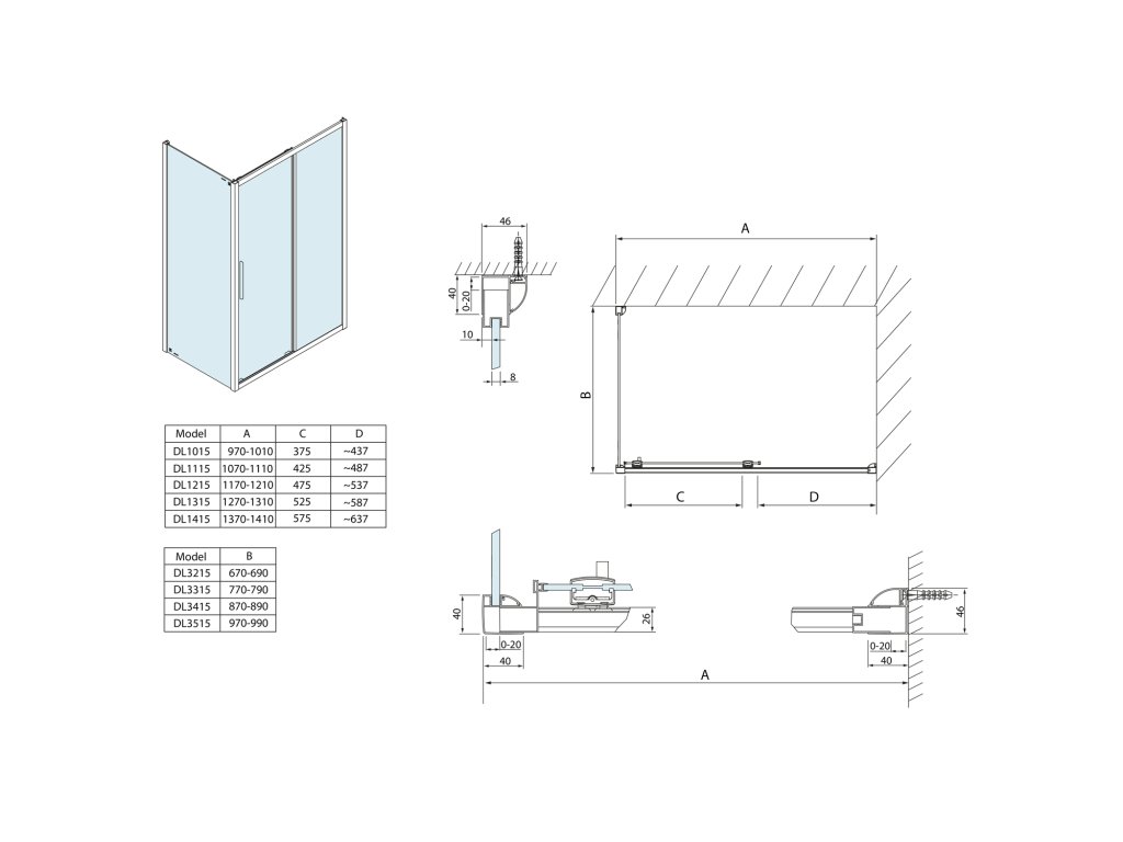 - Snadnou montáž umožňuje výsuvný stěnový profil v rozmezí 0-20 mm